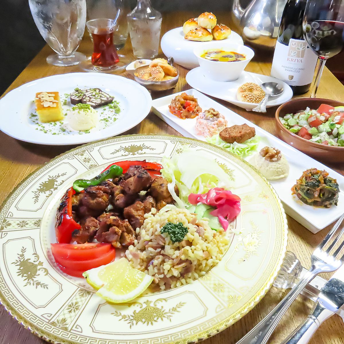 トルコの代表的なお料理を堪能できるコースをご用意しています。前菜の盛り合わせやスープ、自家製のパン、デザート等を含む全7品なので満足していただけること間違いなし◎メインは数種類からお選びいただけます!デートや誕生日など、様々なシーンにご利用ください!
